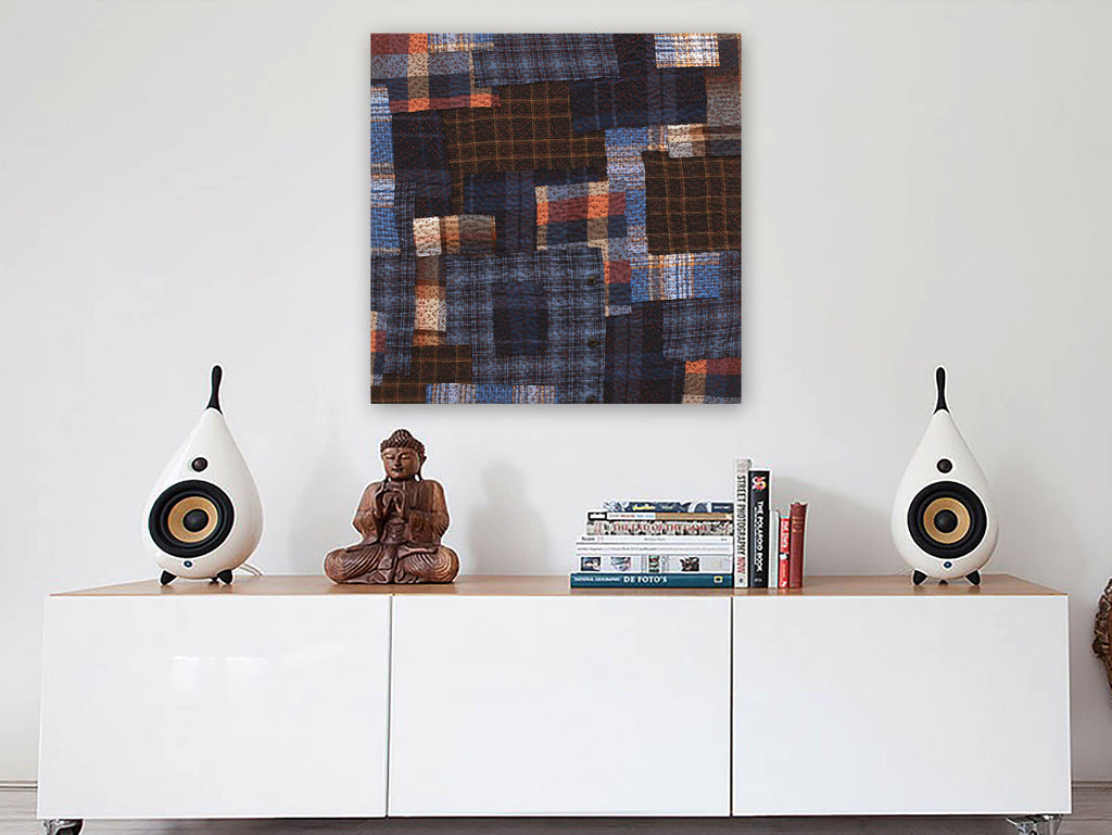 This piece is made from upcycled flannel shirts that have been cut up and reassembled into a new design. It's covered with contemplative stitching that holds it together, mending the worn disparate pieces into something new.