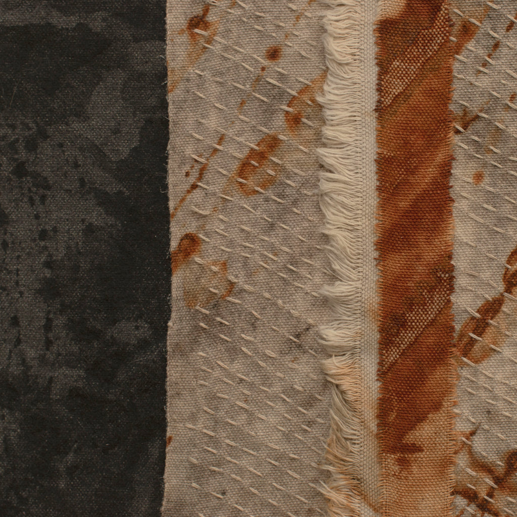 - iron oxide, leaf prints, natural earth pigments and hand stitching on canvas