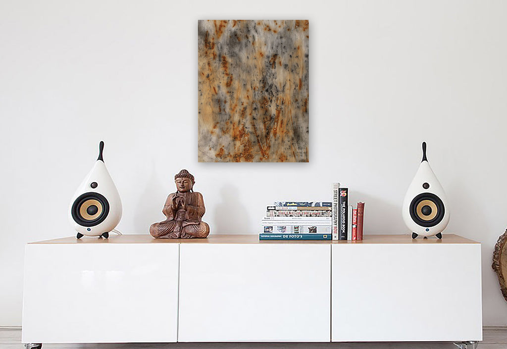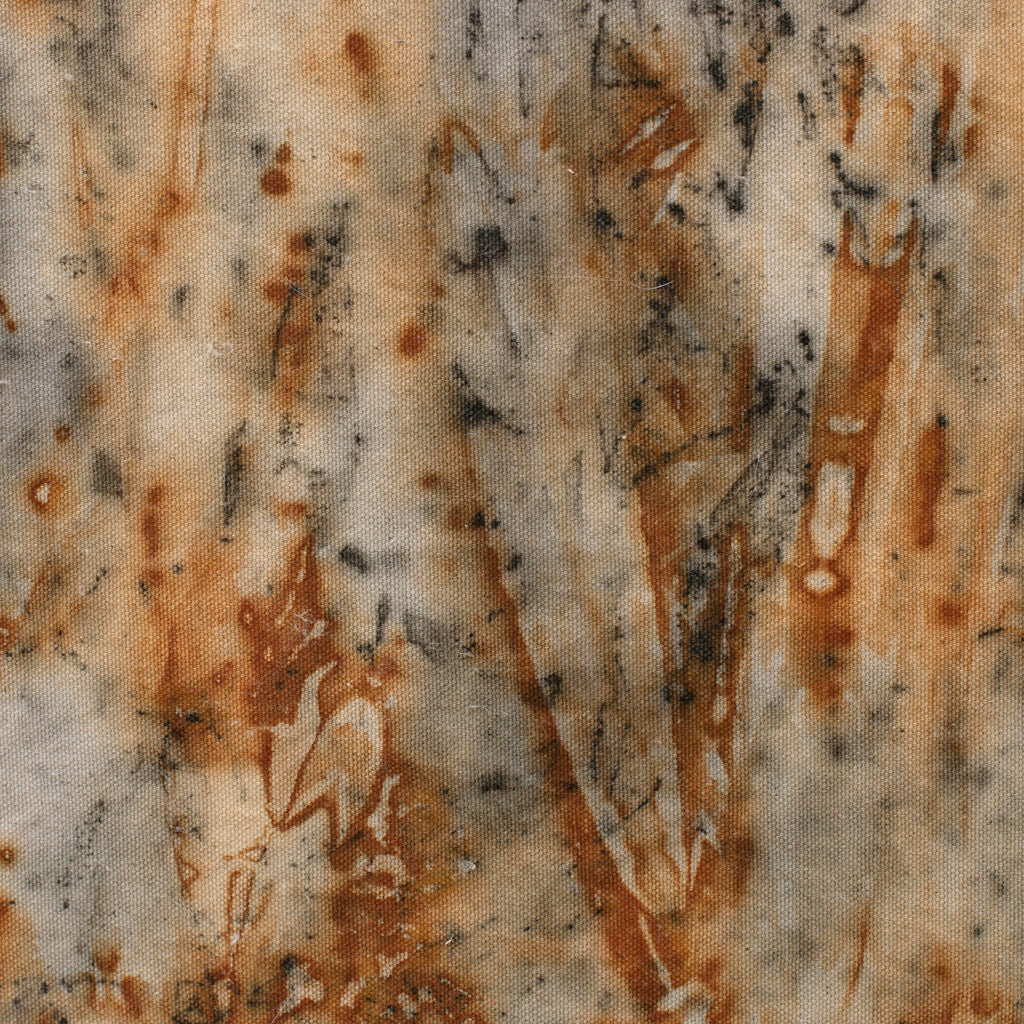 Sustainability is an important part of my artistic practice, and this piece was created using rusty metal pieces and Ironbark Eucalyptus leaves placed on wet canvas to create interesting marks.