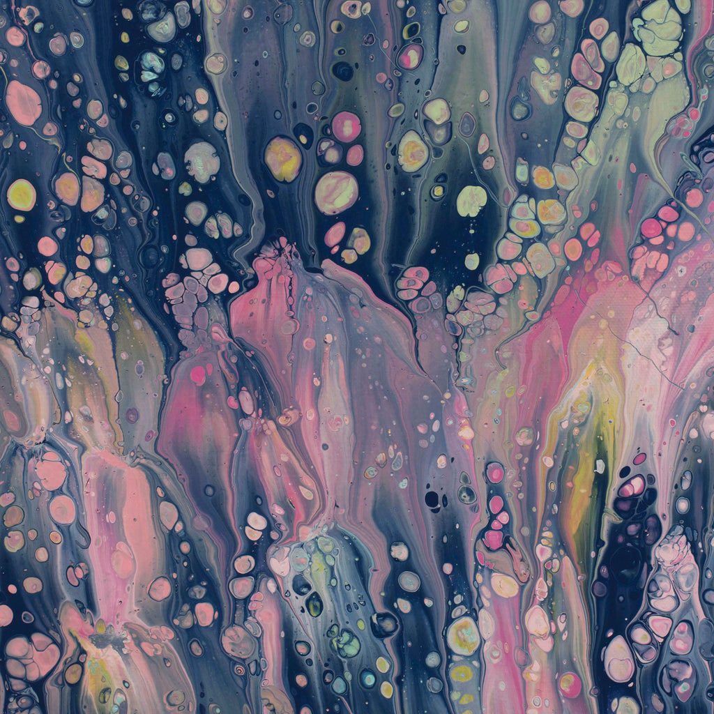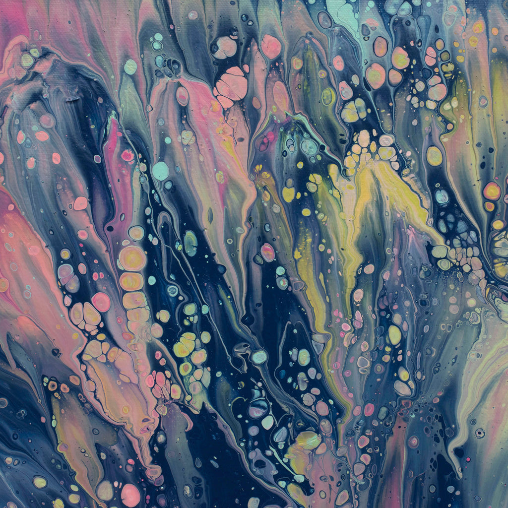 Since that epiphany, I have developed these paintings through the use of precise pull techniques and surfactants added to the paint. I continue to be amazed by the variety of art I can create this way, and each painting is completely unique and surprising.