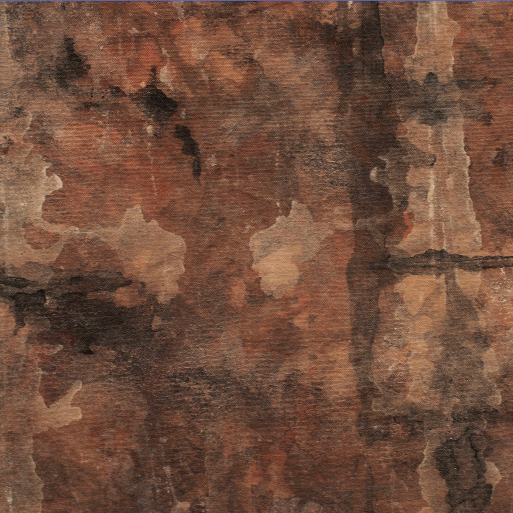 The pigments that I use are minerals found in the earth -- burnt sienna, raw umber, yellow ochre, orange ochre, red iron oxide, and graphite gray. I use diluted soy milk to bind the powdered pigments to the canvas and a finishing varnish to protect the piece.