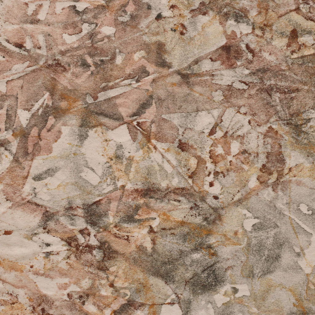 The pigments that I use are minerals found in the earth -- burnt sienna, raw umber, yellow ochre, orange ochre, red iron oxide, and graphite gray. I use diluted soy milk to bind the powdered pigments to the canvas and a finishing varnish to protect the piece.