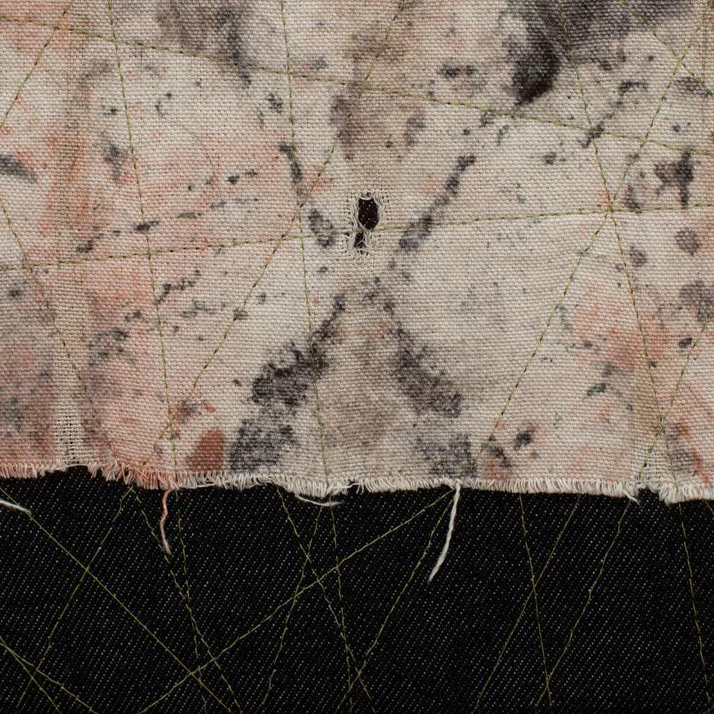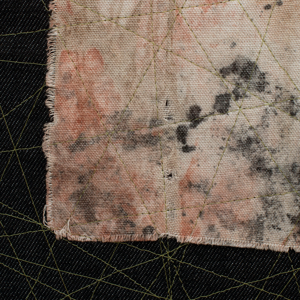 - natural earth pigments and stains on cotton canvas and machine stitched denim