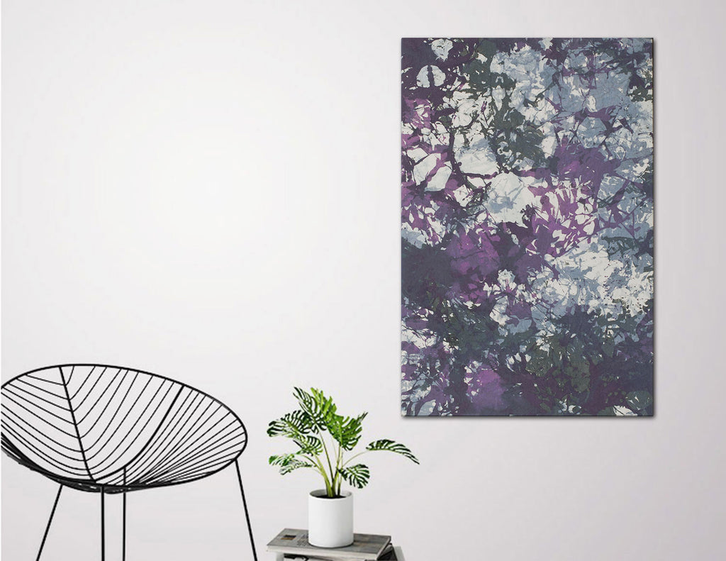 When dry, the painting is stretched with the design wrapping around the sides, so it can be hung with or without a frame.
