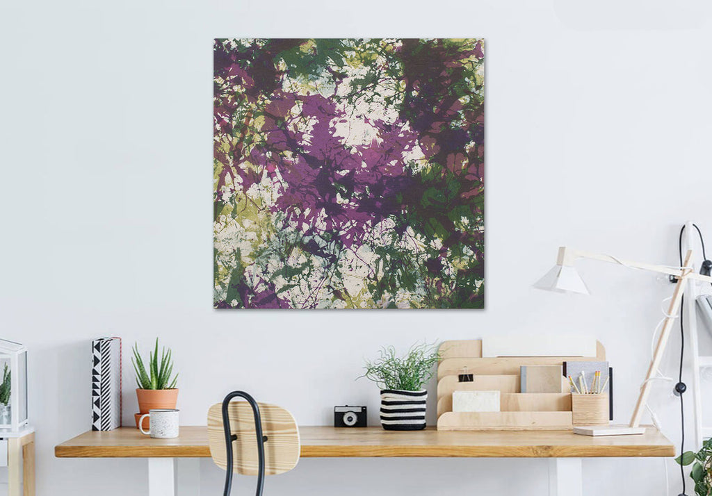 When dry, the painting is stretched with the design wrapping around the sides, so it can be hung with or without a frame.