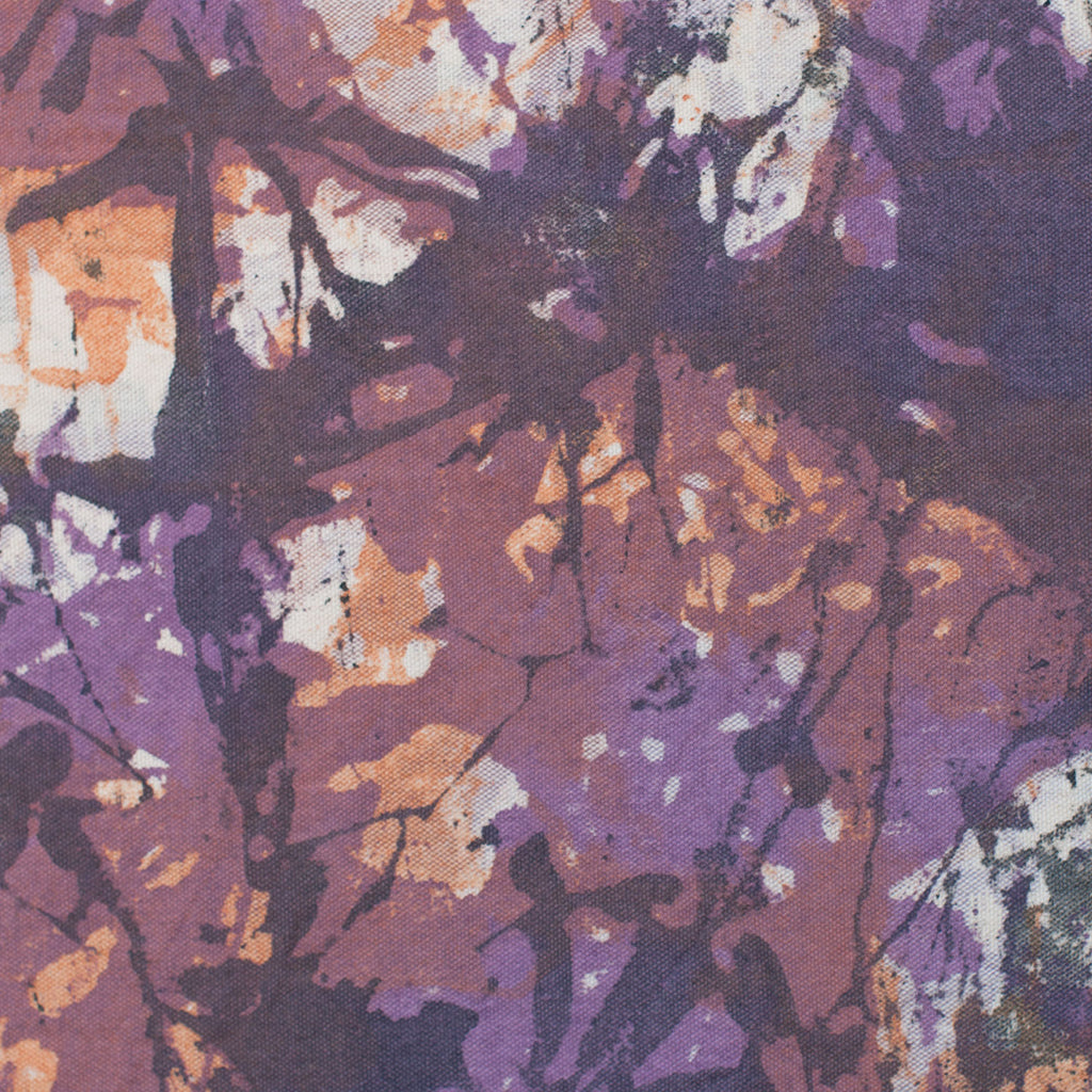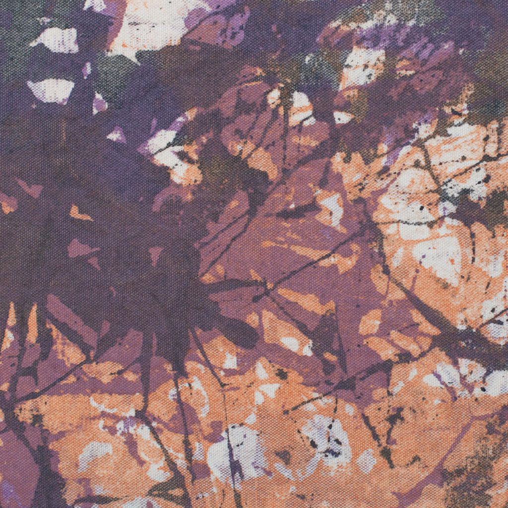 Each piece is executed with an experienced eye for design and an emphasis on harmony and balance. The canvas is intentionally wrinkled in the process, and the set-in wrinkles add texture and depth to the art. The striking patterns in the finished paintings often resemble animals, insects, people and plants.